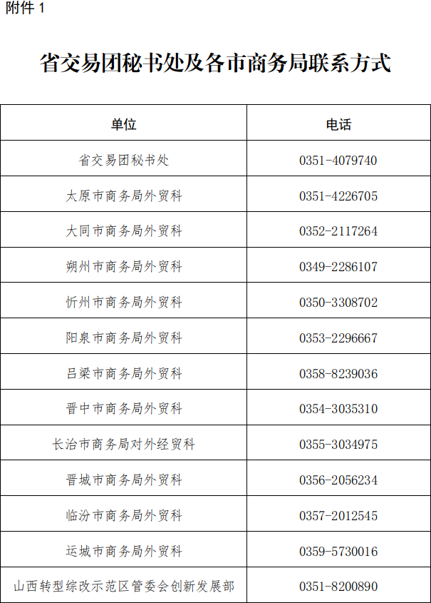 1.省交易团秘书处及各市级商务主管部门联系方式