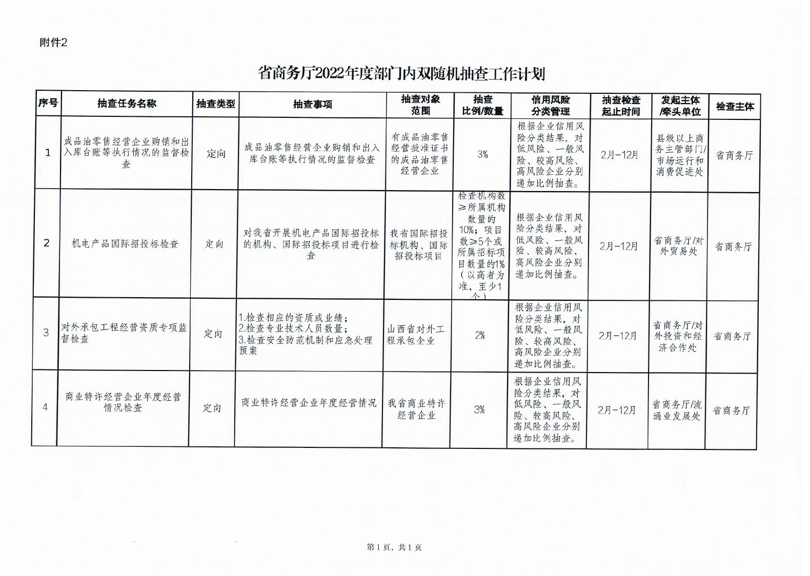 关于报送省商务厅2022年度随机抽查事项清单暨双随机抽查工作计划的函